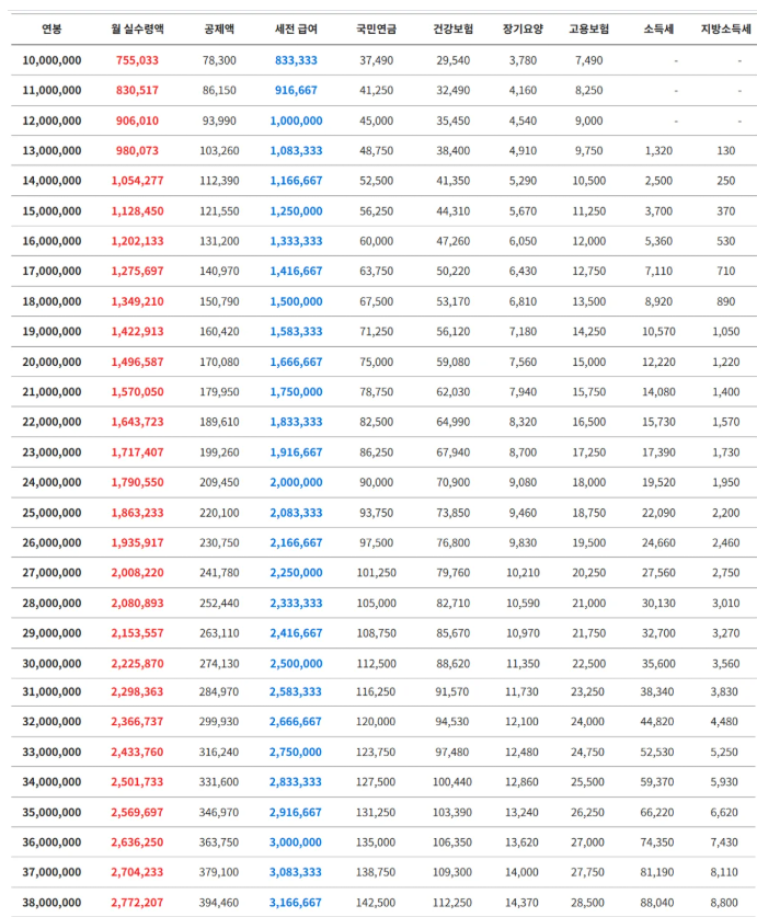 ▶ 연봉 실수령액 예시 (2025년 기준)